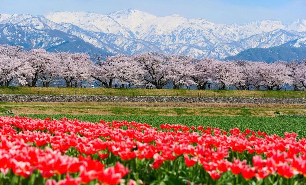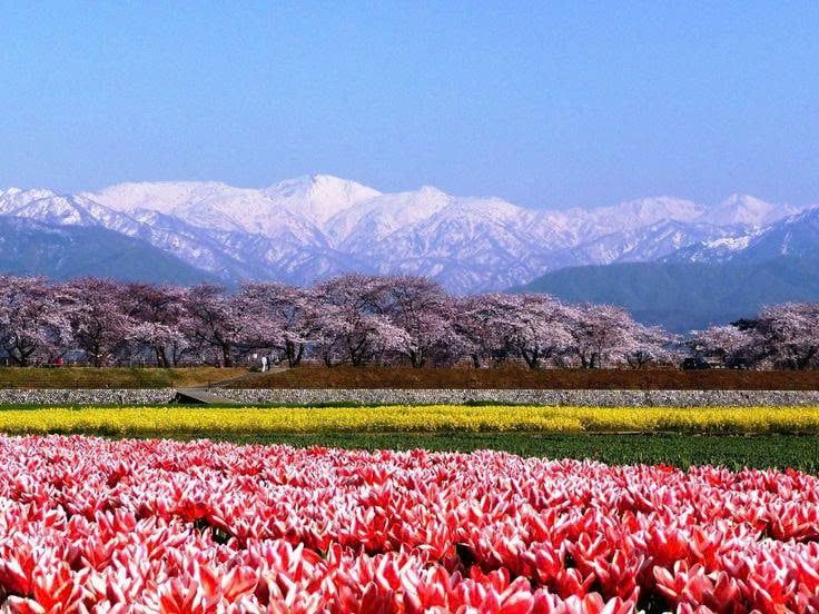 - Ngắm Hoa Anh Đào theo phong cách người Nhật bản địa tại Bộ Tứ Mùa Xuân Asahi Funagawa với bức tranh được vẽ bằng Hoa Cải & Tulip, Hoa Anh Đào, Tuyết trắng và Dòng sông Asahi.